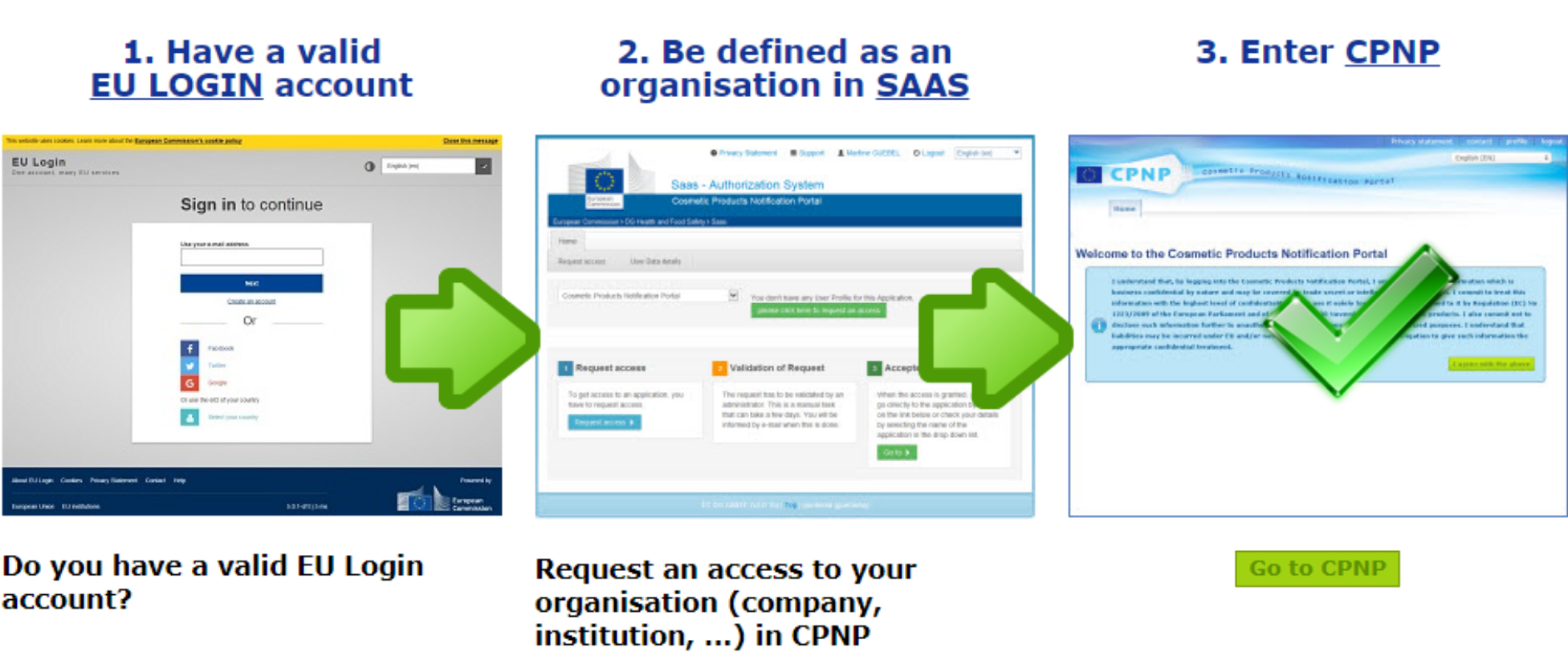 La première étape consiste à créer son compte de connexion sur le site de la Commission européenne via l’interface ECAS (EU login account). Une fois le compte créé, un accès au CPNP doit être demandé et créé via l’interface SAAS. C’est l’occasion de créer le compte de la société s’il n’existe pas, qui comportera la liste des produits cosmétiques notifiés et en cours de notification. Il est également possible de rejoindre un compte déjà existant grâce à une liste. Même si la notification est déléguée, la société qui met les produits sur le marché doit donc créer un compte sur le CPNP, et gérer les accès à ce compte. Les identifiants étant personnels, attention à ne pas se retrouver coincé si la personne qui administre le compte quitte la société sans les laisser ! Une fois l’accès au CPNP validé, la notification peut commencer.
